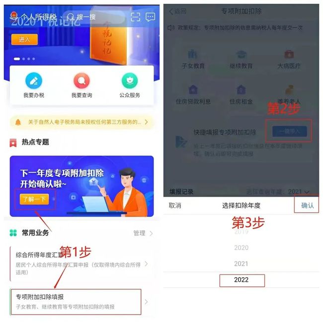 情形一:2022年的专项附加扣除信息若无变动,只需在2021年基础上确认即可。